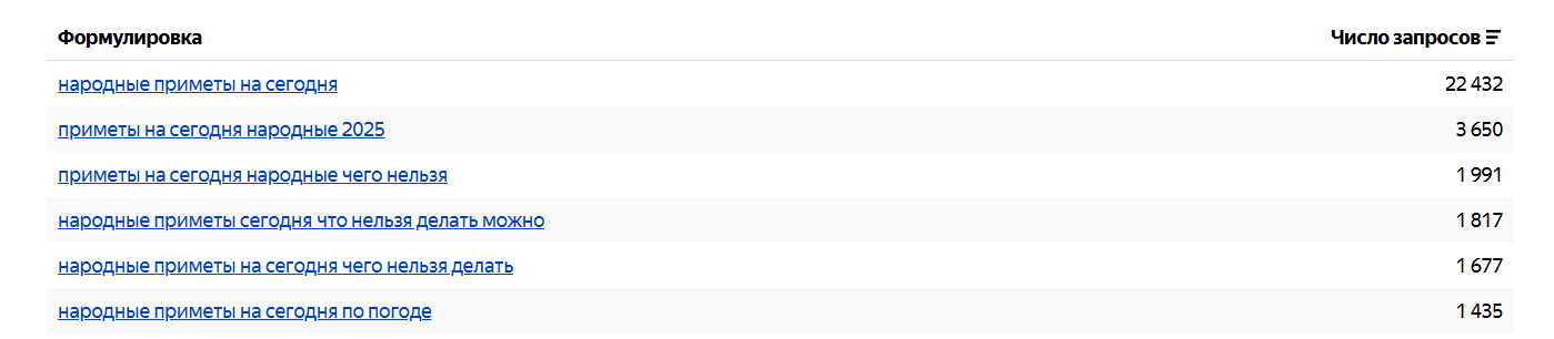 Идея: привлечь поток пользователей, которые хотят почитать про народные приметы сегодняшнего дня.