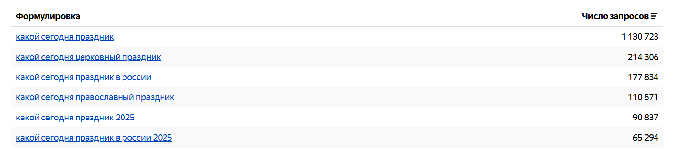 Спрос по таким запросам, как [#название праздника# + открытка] или [#название праздника# + поздравление] сильно зависит от сезонности, но это позволяет сформировать точный контент план на год. На примере праздника «День автомобилиста»: